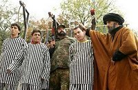 راهپيمايان با در دست داشتن پلاکاردهايی و همچنين با نمايش اعدام و سنگسار خواستار فشار بيشتر جامعه ی جهانی به رژيم جمهوری اسلامی برای رعايت حقوق بشر شدند.