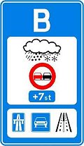 بر اساس قوانين تازه در بلژيک سبقت گرفتن کاميونها در هنگام بارش باران يا برف و همچنين در ساعتنهای پررفت و آمد شبانه روز ممنوع است و وزارت راه و ترابری بايستی تابلوی مزبور را در مرزهای ورودی برای رانندگان کاميونهای خارجی نصب کند.