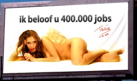 خانم Tania Derveaux از حزب NEE که نخست در تبليغات خود قول داده بود پس از انتخاب شدن به عنوان سناتور برای 400 هزار بلژيکی کار (Job) درست کند، پس از استقبال گرم بلژيکی ها احساساتی شد و به آنها قول داد با 40 هزار نفر از آنها هم سکس دهانی (Blowjob) داشته باشد.